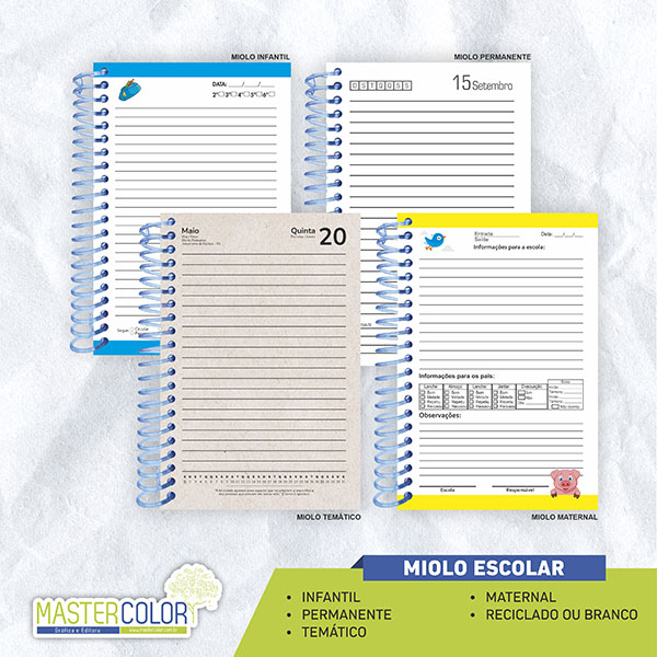 - Infantil: Miolo pautado com campo para data e dia;