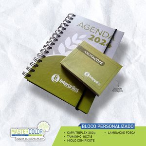 - Bloco capa dura com impressão podendo ser no papel reciclado ou couchê;
